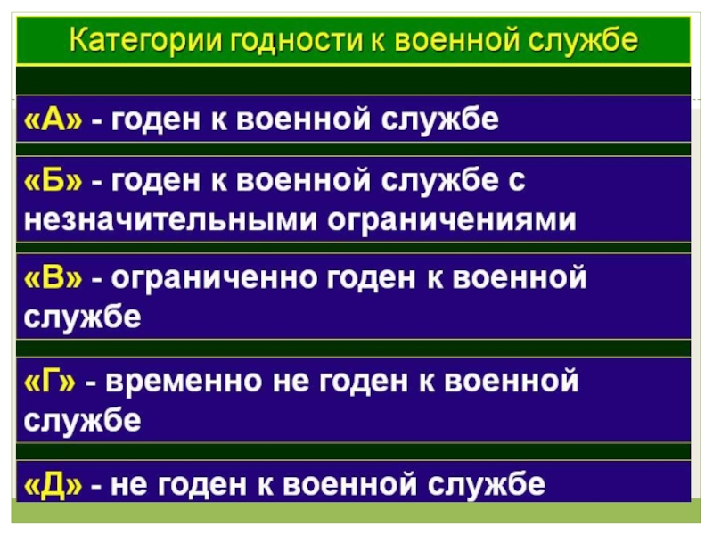 6. Категория годности «Г» означает, что гражданин С. временно не годен к военной службе. Работники военного комиссариата в течение года должны принять меры по его дополнительному медицинскому обследованию (если это необходимо), лечению и через год провести новое медицинское освидетельствование.
