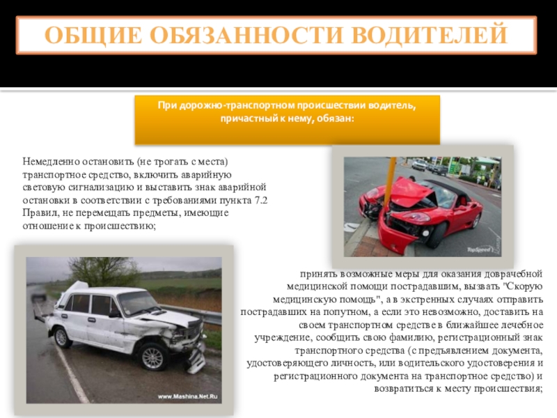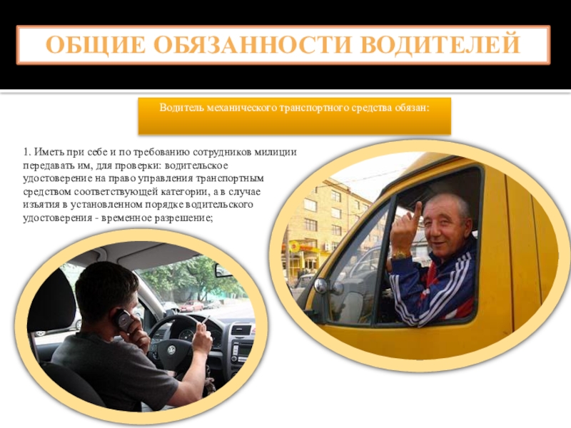 Слайд 13ОБЩИЕ ОБЯЗАННОСТИ ВОДИТЕЛЕЙ