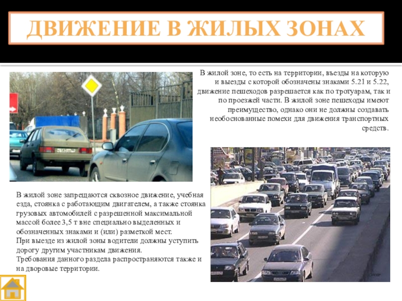 Слайд 28ДВИЖЕНИЕ В ЖИЛЫХ ЗОНАХ