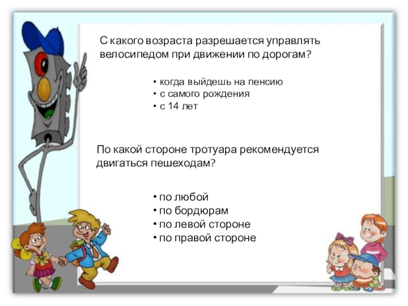 3. С какого возраста разрешается управлять велосипедом при движении по дорогам?