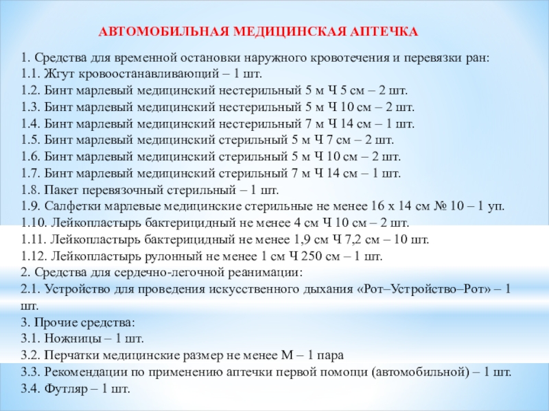 Слайд 25АВТОМОБИЛЬНАЯ МЕДИЦИНСКАЯ АПТЕЧКА