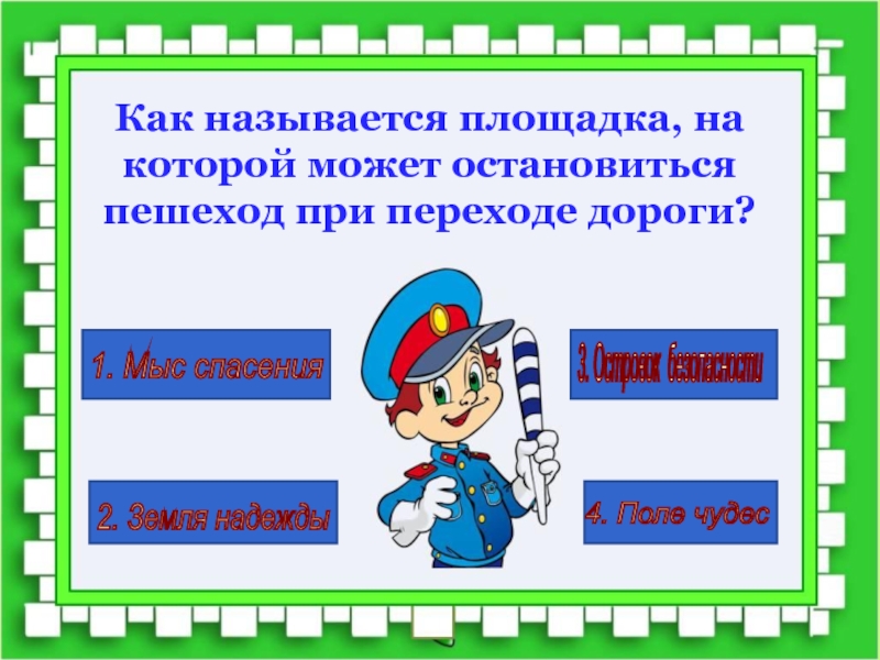 Как называется площадка, на которой может остановиться пешеход при переходе дороги?