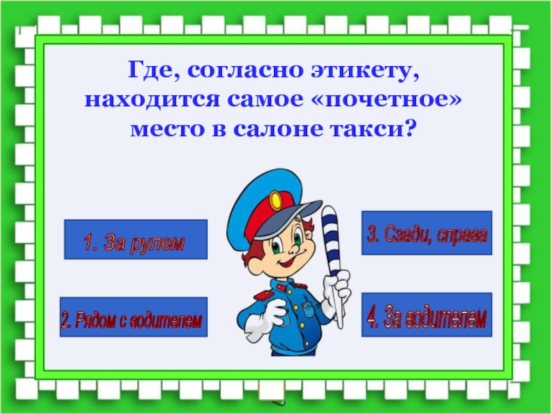 Где, согласно этикету, находится самое «почетное» место в салоне такси?