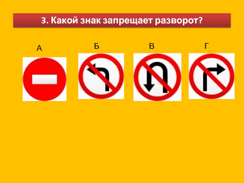 3. Какой знак запрещает разворот?Б.А.Г.В.