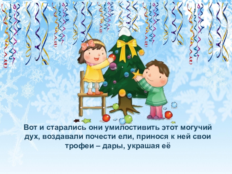 Слайд 5Вот и старались они умилостивить этот могучий дух, воздавали почести ели,