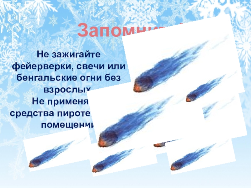 Слайд 19 Хлопушки, бенгальские огни, фейерверки и свечи зажигайте только вдали от