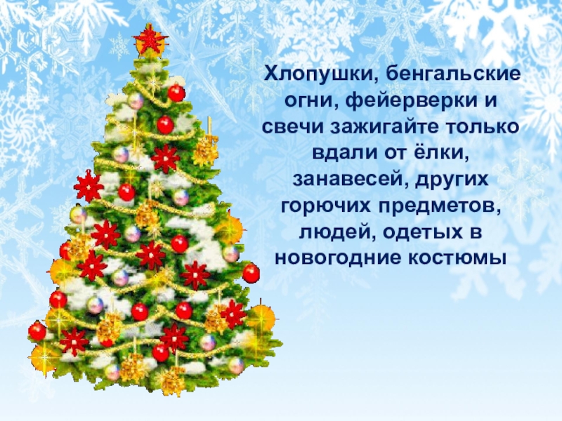 ёлки, занавесей, других горючих предметов, людей, одетых в новогодние костюмы