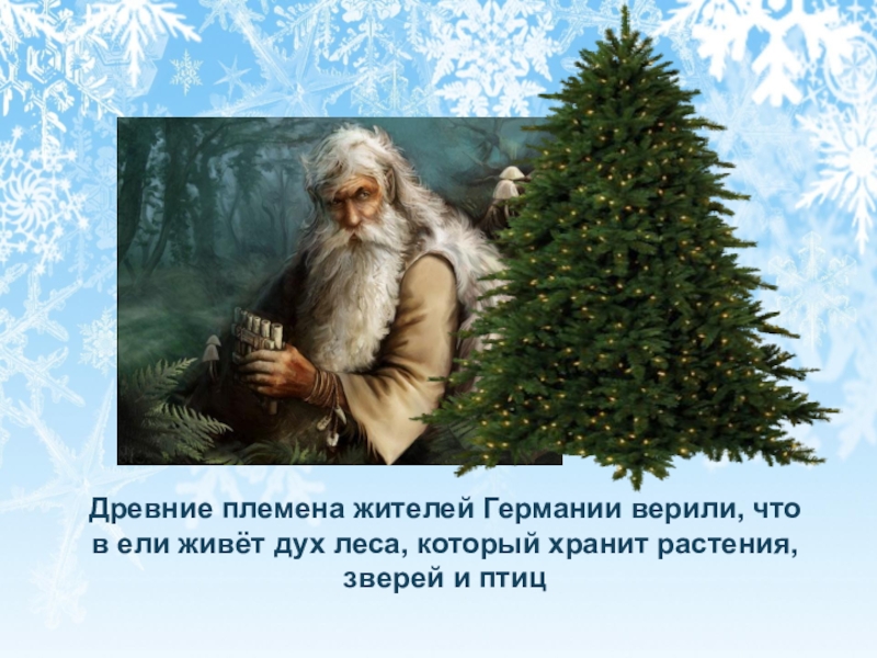 Слайд 4Древние племена жителей Германии верили, что в ели живёт дух леса,