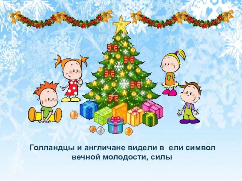 Слайд 6 Голландцы и англичане видели в ели символ вечной молодости, силы