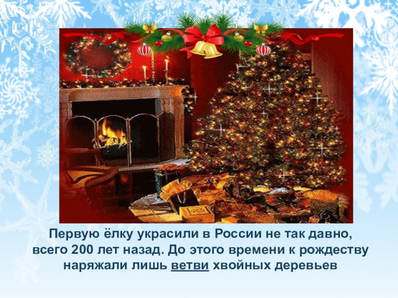 Слайд 10Первую ёлку украсили в России не так давно, всего 200 лет
