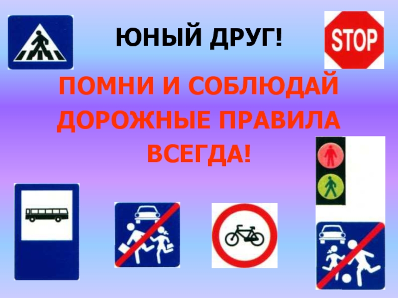 ЮНЫЙ ДРУГ!ПОМНИ И СОБЛЮДАЙДОРОЖНЫЕ ПРАВИЛАВСЕГДА!