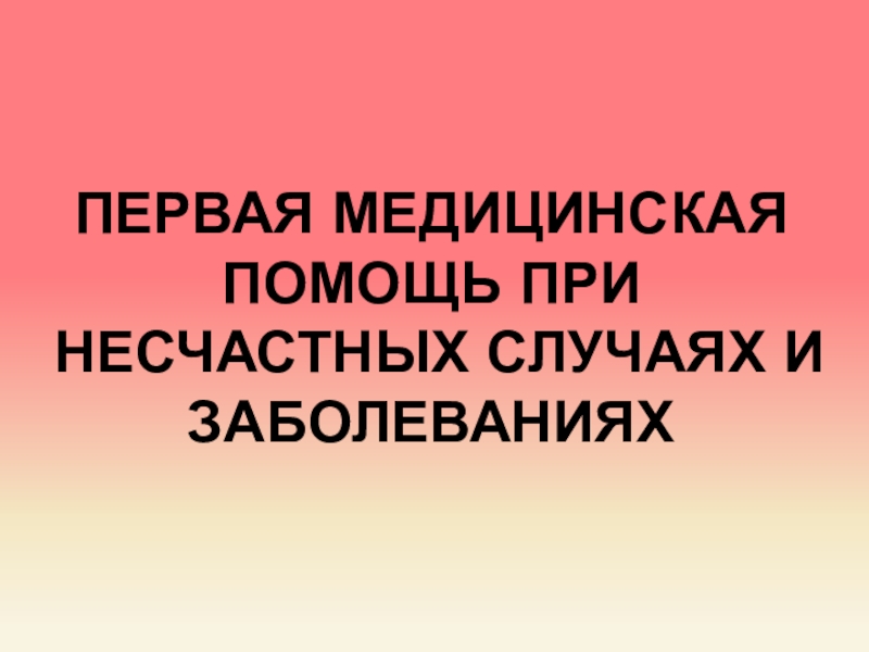 Слайд 1Первая медицинская помощь ПРИ НЕСЧАСТНЫХ СЛУЧАЯХ И ЗАБОЛЕВАНИЯХ