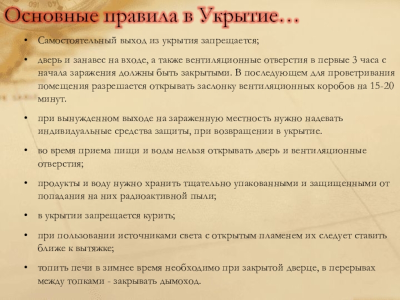 Слайд 13Самостоятельный выход из укрытия запрещается;
