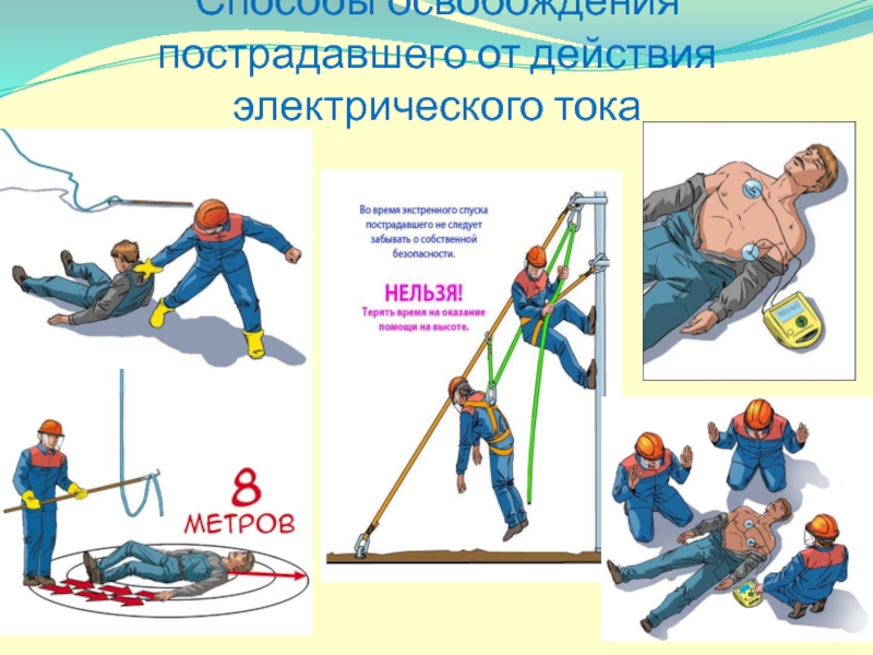 Слайд 13Способы освобождения пострадавшего от действия электрического тока