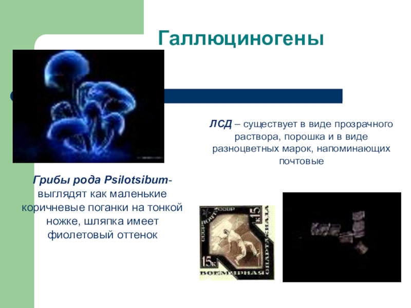ЛСД – существует в виде прозрачного раствора, порошка и в виде разноцветных марок, напоминающих почтовые