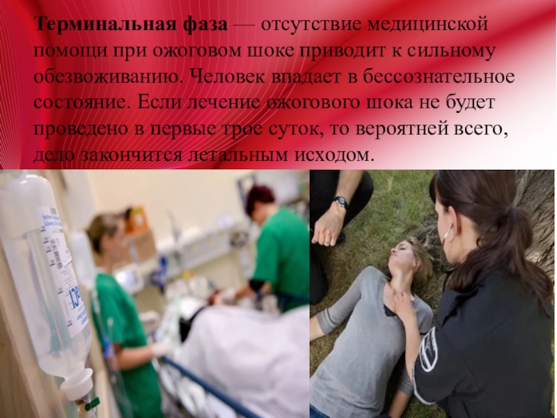 Слайд 7Терминальная фаза — отсутствие медицинской помощи при ожоговом шоке приводит к