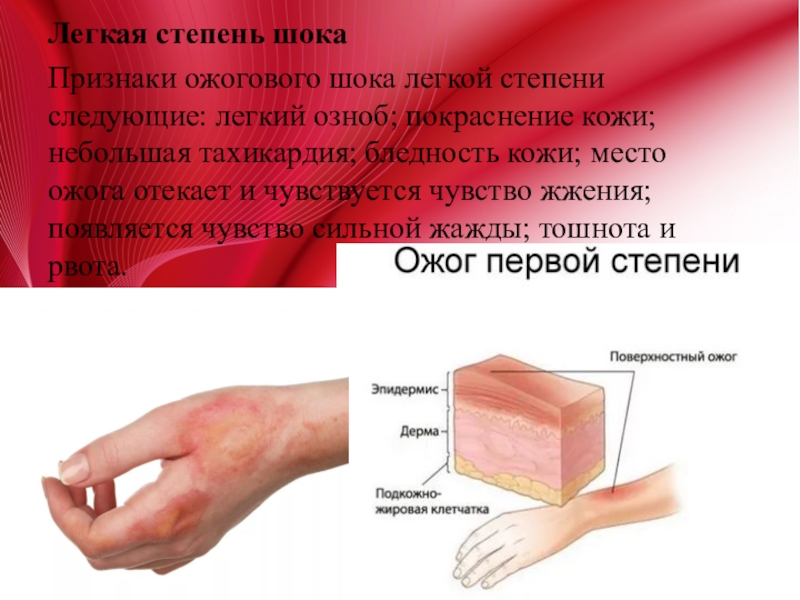 Признаки ожогового шока легкой степени следующие: легкий озноб;