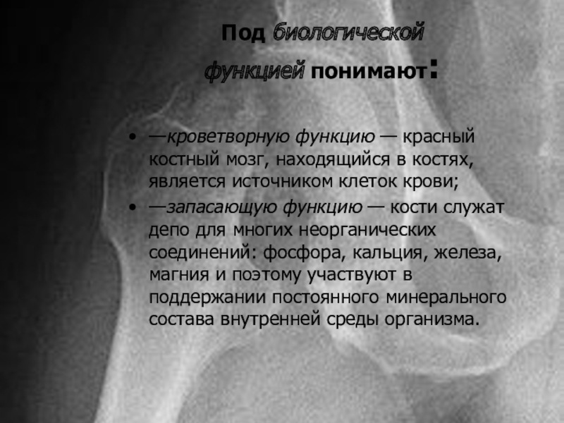 —запасающую функцию — кости служат депо для многих неорганических соединений: фосфора, кальция, железа, магния и поэтому участвуют в поддержании постоянного минерального состава внутренней среды организма.