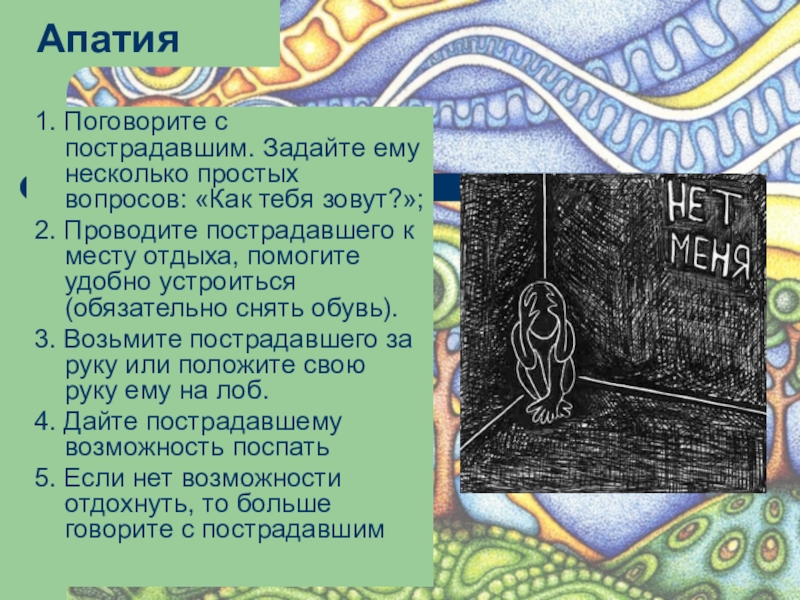 3. Если пострадавший говорит, слушайте его, выказывайте заинтересованность, понимание, сочувствие.