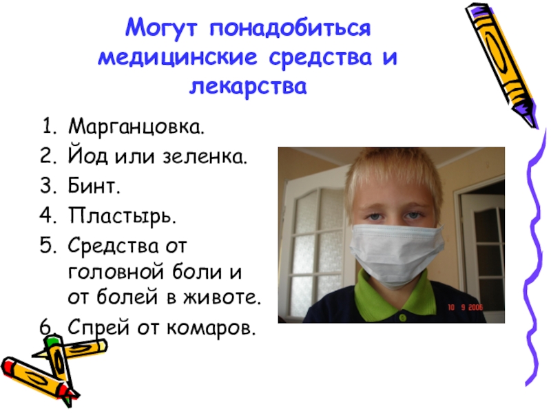 Слайд 5Могут понадобиться медицинские средства и лекарства