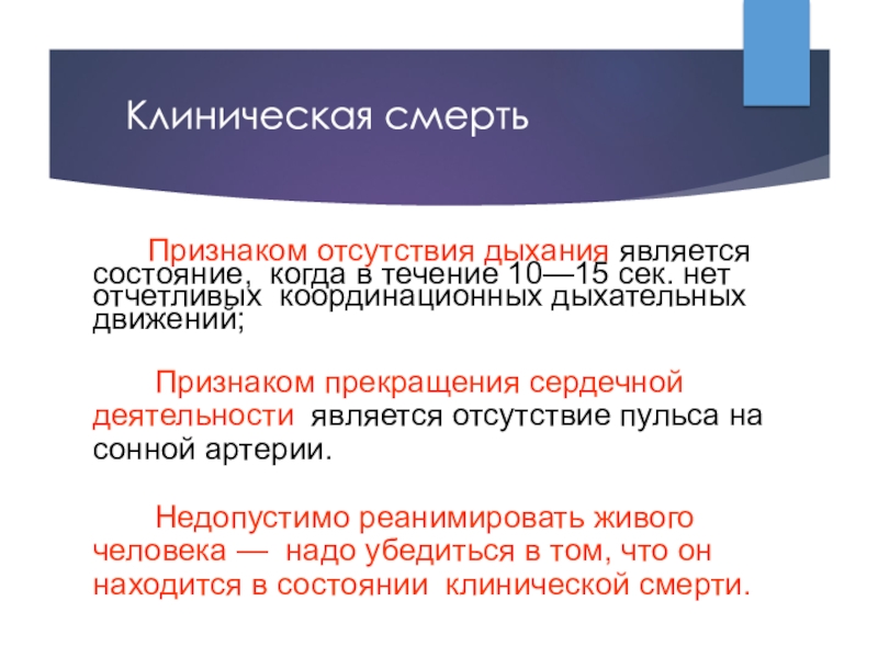 ОПРЕДЕЛЕНИЕ ПРИЗНАКОВ КЛИНИЧЕСКОЙ СМЕРТИ