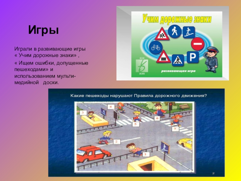 « Ищем ошибки, допущенные пешеходами» и использованием мульти-медийной доски.