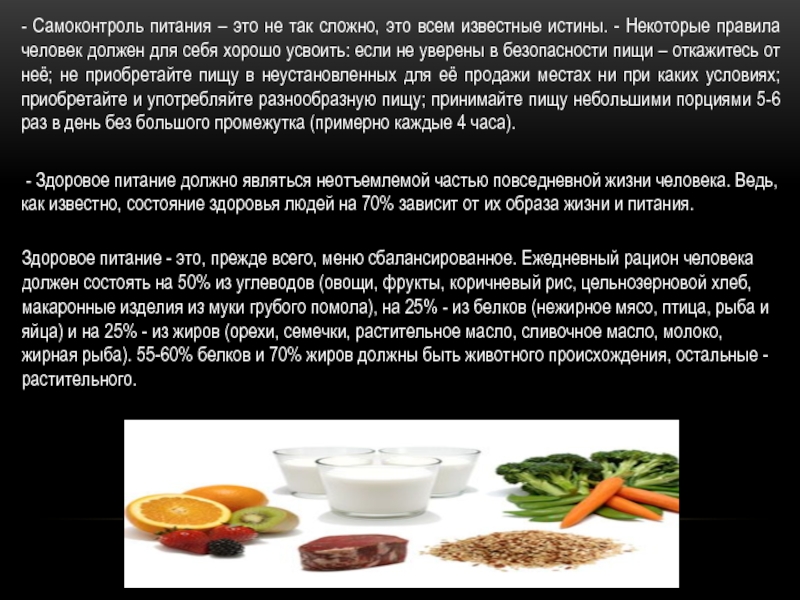- Здоровое питание должно являться неотъемлемой частью повседневной жизни человека. Ведь, как известно, состояние здоровья людей на 70% зависит от их образа жизни и питания.
