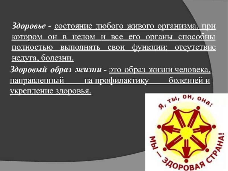 Слайд 3Здоровый образ жизни - это образ жизни человека, направленный на профилактику болезней и укрепление здоровья.