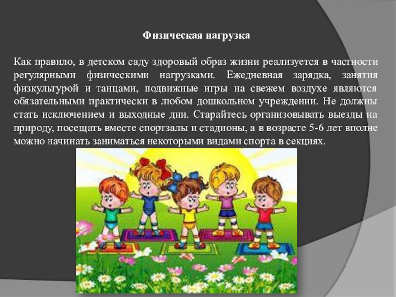 Как правило, в детском саду здоровый образ жизни реализуется в