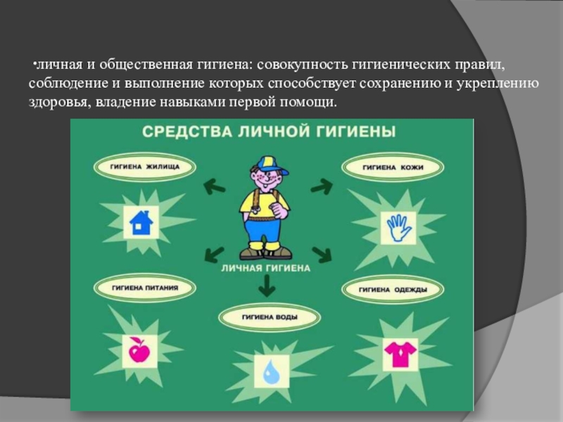 Слайд 11личная и общественная гигиена: совокупность гигиенических правил, соблюдение и выполнение которых