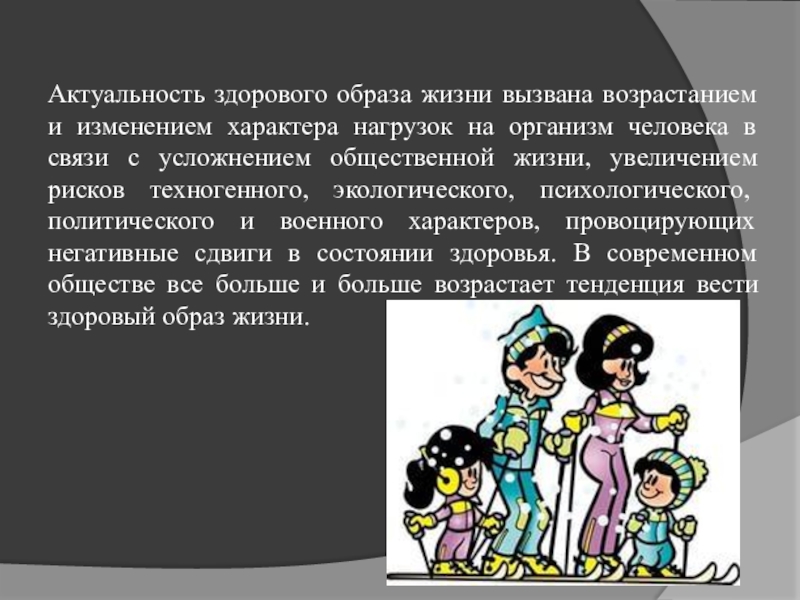 Слайд 6Актуальность здорового образа жизни вызвана возрастанием и изменением характера нагрузок на