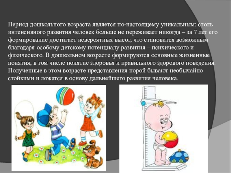 Слайд 13Период дошкольного возраста является по-настоящему уникальным: столь интенсивного развития человек больше
