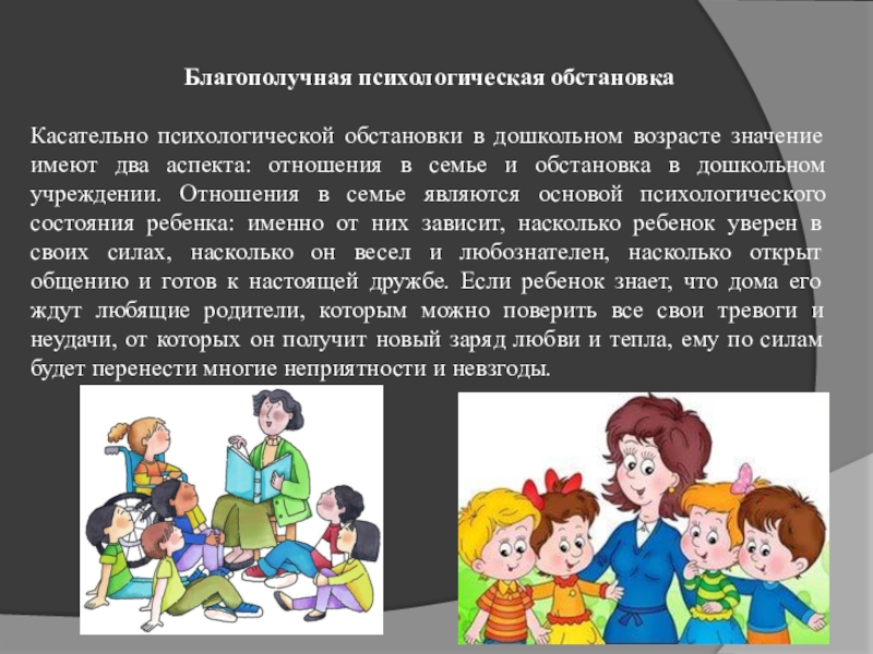 Касательно психологической обстановки в дошкольном возрасте значение имеют два