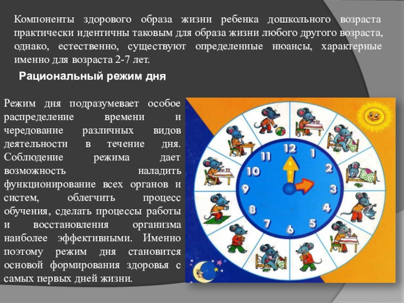 Слайд 14Компоненты здорового образа жизни ребенка дошкольного возраста практически идентичны таковым для