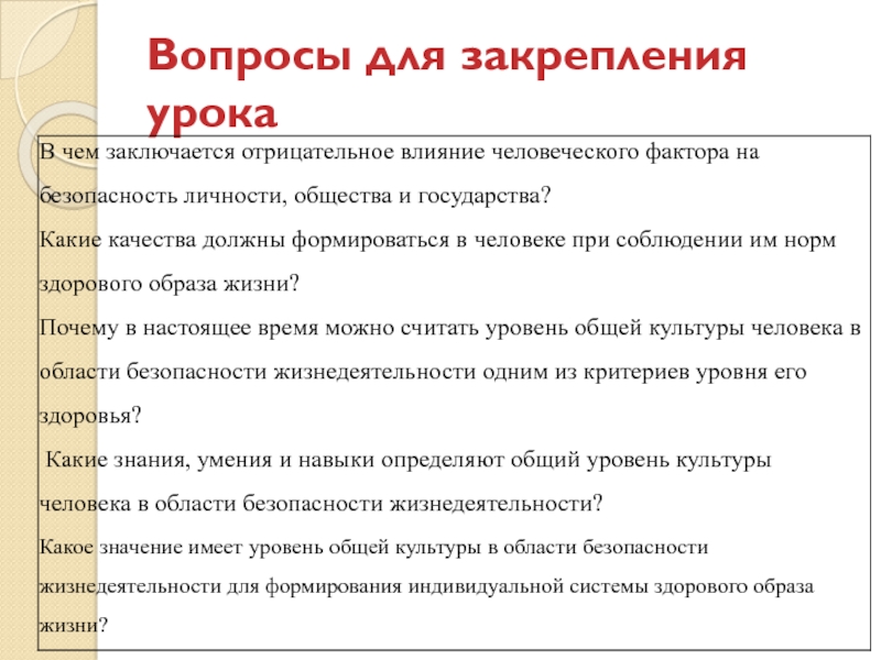 Под современным уровнем культуры безопасности жизнедеятельности следует понимать