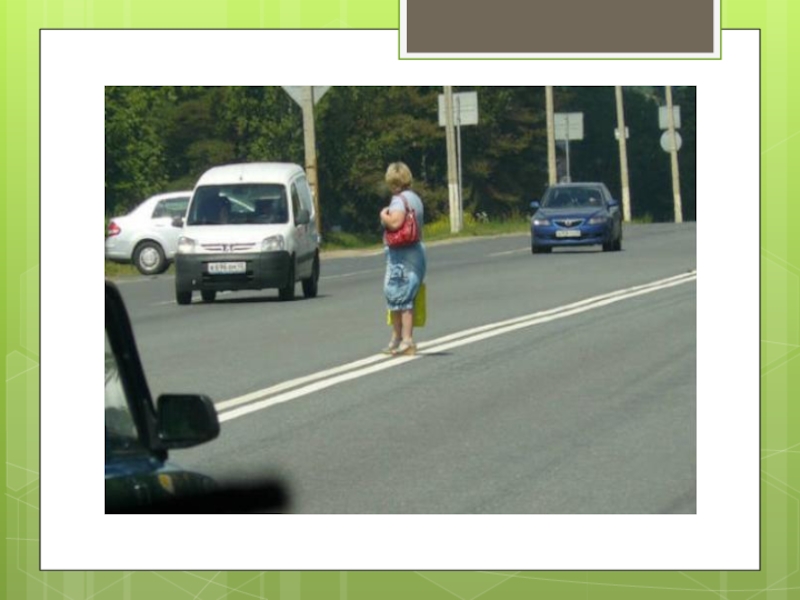Слайд 8На проезжей части пешеходы не должны задерживаться или останавливаться без необходимости.