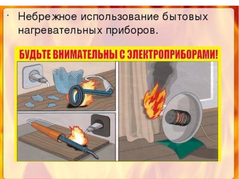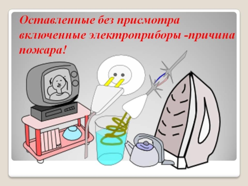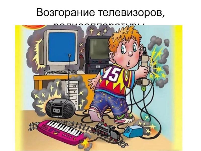 Слайд 9Возгорание телевизоров, радиоаппаратуры.