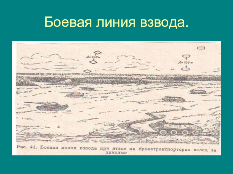 Слайд 5Предбоевой порядок мотострелкового взвода в линию отделений.