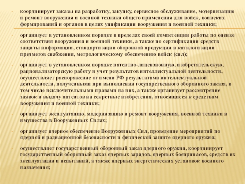 Слайд 11координирует заказы на разработку, закупку, сервисное обслуживание, модернизацию и ремонт вооружения