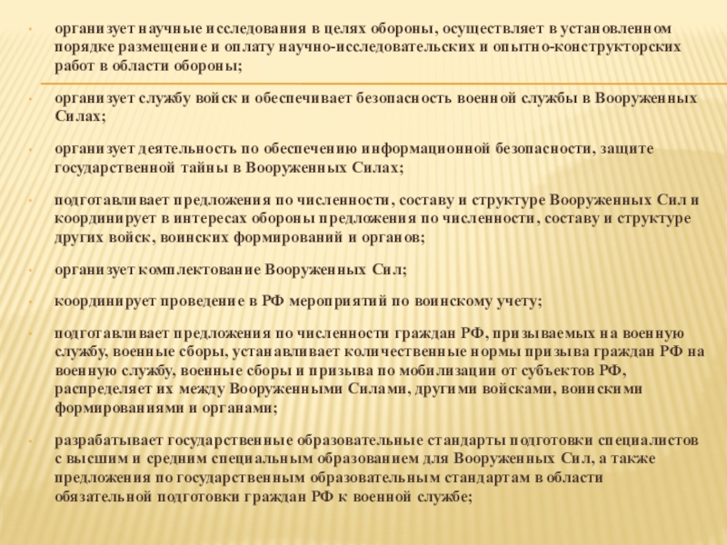 Слайд 8организует научные исследования в целях обороны, осуществляет в установленном порядке размещение