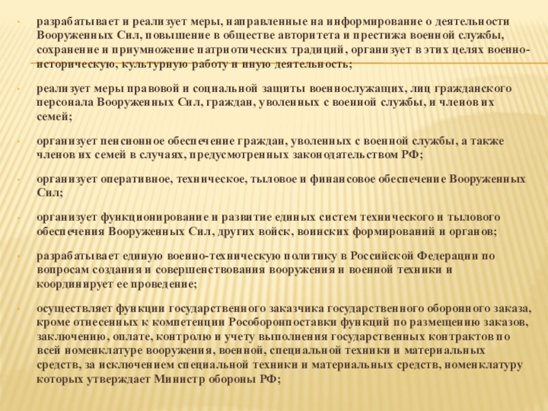 Слайд 10разрабатывает и реализует меры, направленные на информирование о деятельности Вооруженных Сил,