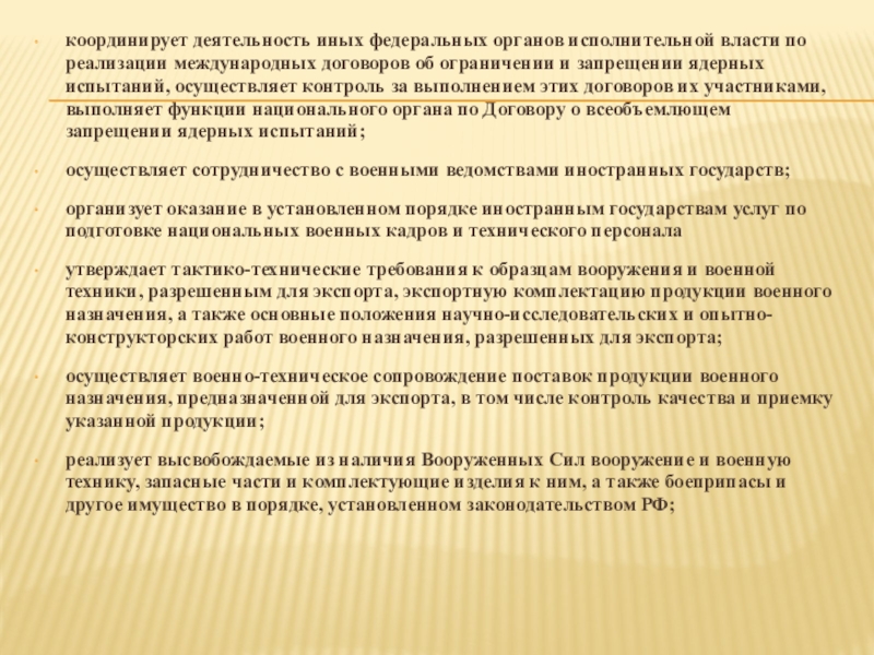 Слайд 17координирует деятельность иных федеральных органов исполнительной власти по реализации международных договоров