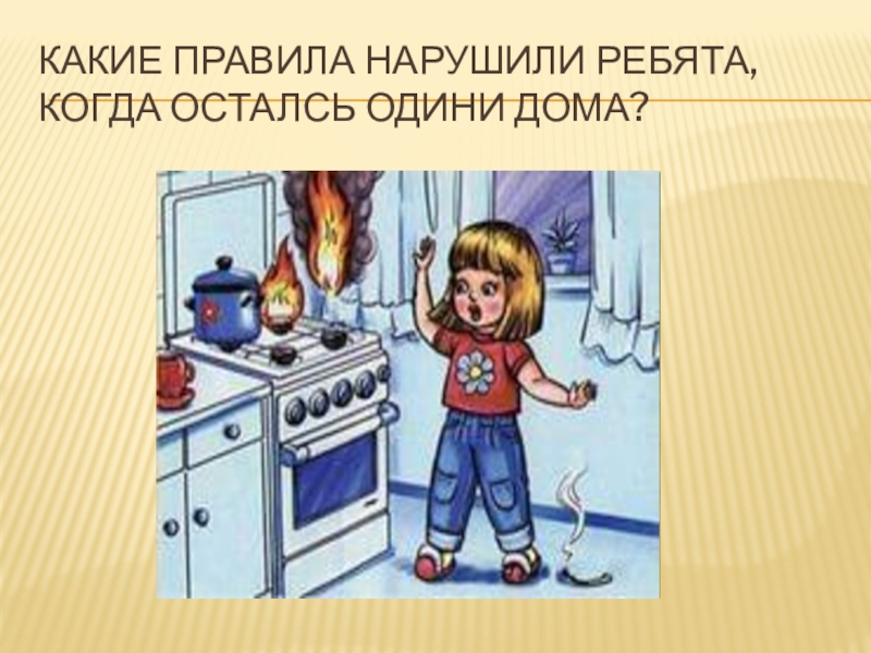 Слайд 7Какие правила нарушили ребята, когда осталсь одини дома?