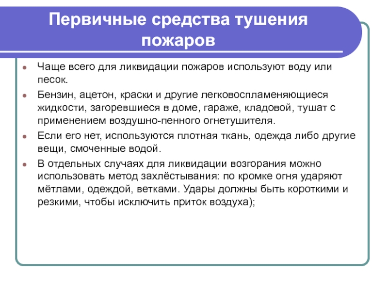 Слайд 8Первичные средства тушения пожаров
