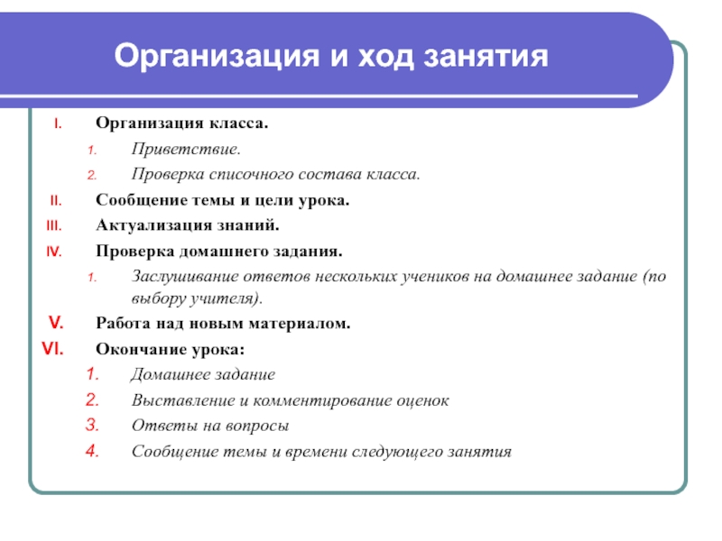 Слайд 2Организация и ход занятия
