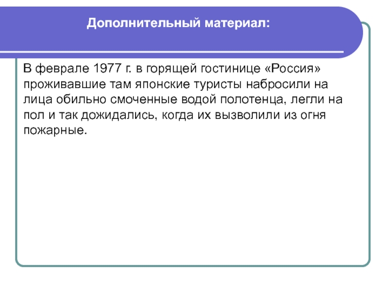 В феврале 1977 г. в горящей гостинице «Россия» проживавшие там