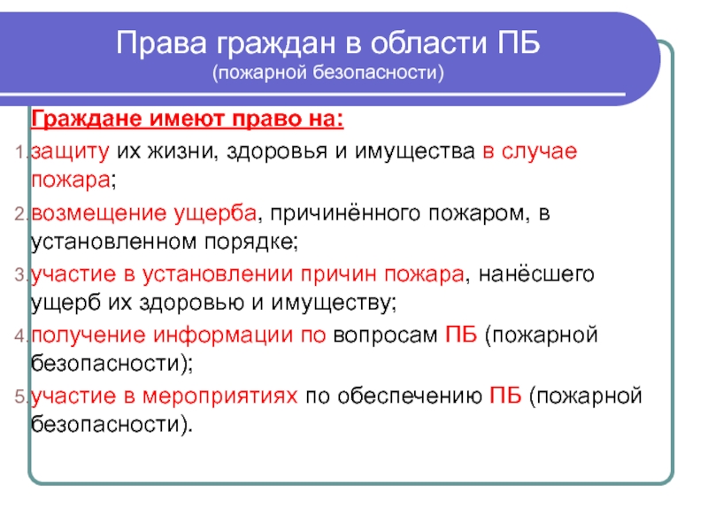 Слайд 5Права граждан в области ПБ