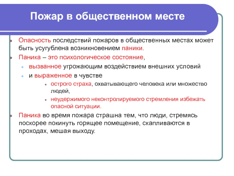Опасность последствий пожаров в общественных местах может