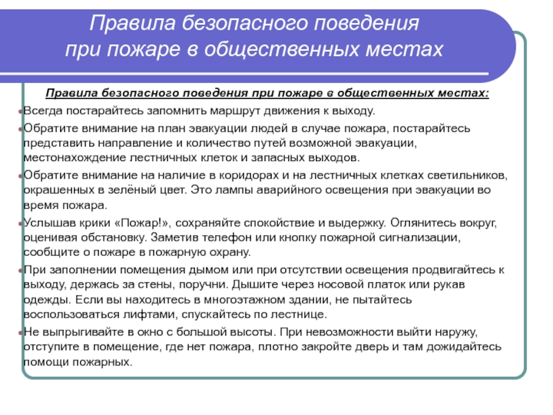 Правила безопасного поведения при пожаре