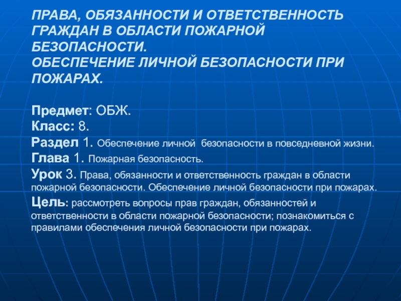 Урок 3. Права, обязанности и ответственность граждан в области пожарной безопасности. Обеспечение личной безопасности при пожарах.